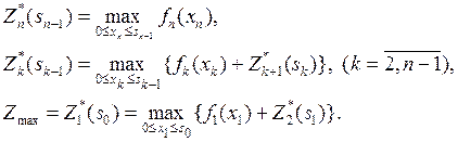 – условно оптимальная совокупная прибыль, полученная от k -го, (k +1)-го, …, n -го хозяйствующих субъектов, если между ними оптимальным образом распределялись ресурсы в объеме sk-1 (