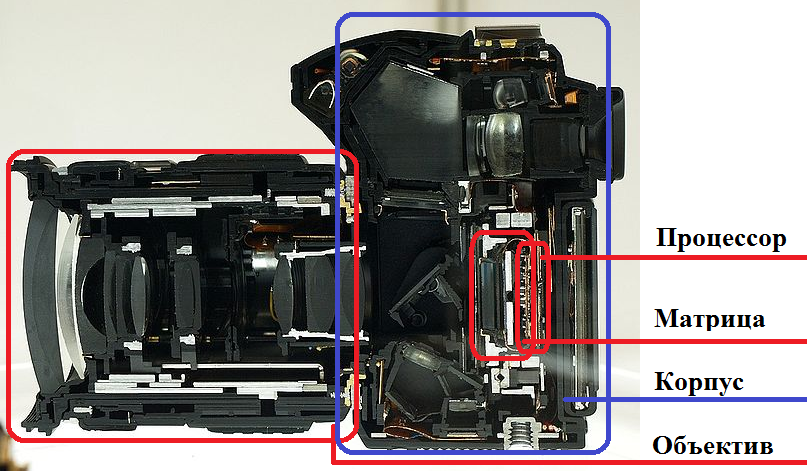 Основные детали, без которых, невозможно получить фотографию как, в зеркальных так и в компактных камерах это: