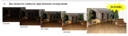 ISO – светочувствительность матрицы. Высокое ISO позволяет делать снимки при плохом освещении, например, в помещении с искусственным освещением. Это мера того, насколько чувствительна матрица к количеству получаемого света. Чем выше ISO, тем она более чувствительна, соответственно, появляется возможность снимать в мало освещённых местах. В цифровых фотоаппаратах имеется возможность записи снимков, сделанных с разной ISO, на один и тот же носитель. Но так было не всегда. Раньше фотографу для этого требовалось сменить пленку. Допустим, ваша камера сигнализирует о том, что ей не хватает света, чтобы правильно выставить экспозицию. Вы, конечно, можете воспользоваться вспышкой. Но предположим, что ситуация исключает эту возможность (например, вы снимаете на концерте). В этом случае вам придется выставить более высокую ISO вручную или воспользоваться функцией автоматической установки светочувствительности.