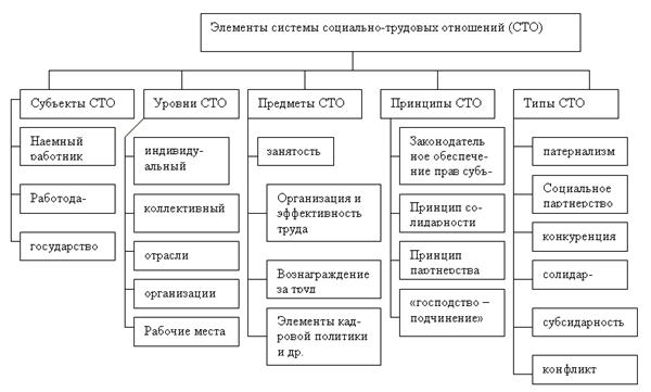 Система социально-трудовых отношений имеет достаточно сложную структуру, которая в условиях рыночной экономики Включает следующие элементы (рис. 1.3).