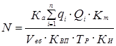 где N — количество персональных компьютеров; Ка — коэффициент автоматизации программирования; qi — количество машинных операций на один показатель, необходимый для решений i-й труппы задач; Qi— максимальный объем входной информации по i-й группе задач (в показателях); Кm — дополнительный коэффициент, учитывающий увеличение времени при использовании программного контроля в ПК; Vвб — среднее быстродействие процессора; Квп — коэффициент понижения среднего быстродействия от обращения к внешним накопителям и устройствам ввода-вывода; ТР — планируемое полезное месячное время работы ПК; КИ — коэффициент использования машинного времени выбранного ПК, учитывающий затраты времени на устранение неисправностей и на регламентируемые работы.