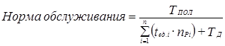 где п — количество видов работ по обслуживанию объекта; tедi — время, необходимое для выполнения единицы объема г-го вида работ; п — число единиц объема i-го вида работ на единицу оборудования или иного объекта расчета (например, единицу производственной площади); Тпол — полезный фонд времени работника за день (смену); Тд — время, необходимое для выполнения работником дополнительных функций, не включаемых в tедi