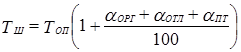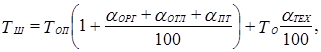 ТШ — оперативное время (ТОП = ТО + ТВ); aОТЛ — время на отдых и личные надобности, % от оперативного времени; aОРГ — время организационного обслуживания, % от оперативного времени; aПТ — время технологически неизбежных потерь, % от оперативного времени; aТЕХ — время на техническое обслуживание, % от основного времени.