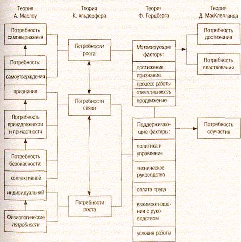Рис. 8.2. Взаимосвязь основных содержательных теорий мотивации