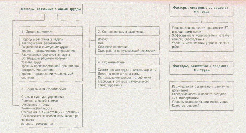 Рис. 9.2. Классификация факторов, влияющих на результативность труда в аппарате управления организацией