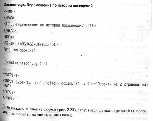 Например, чтобы перейти на две страницы назад, можно использовать сценарий из листинга 2.34.
