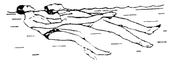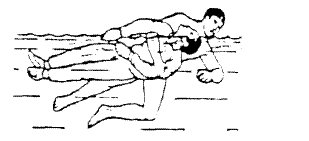 Захват утопающего под руки. Приблизившись сзади, спасатель продвигает свою правую руку под правую (левую) руку спасаемого, берет его за левую (правую) руку выше локтевого сгиба и прижимает спасаемого спиной к себе, а затем буксирует на левом (правом) боку (рис.10.11.).