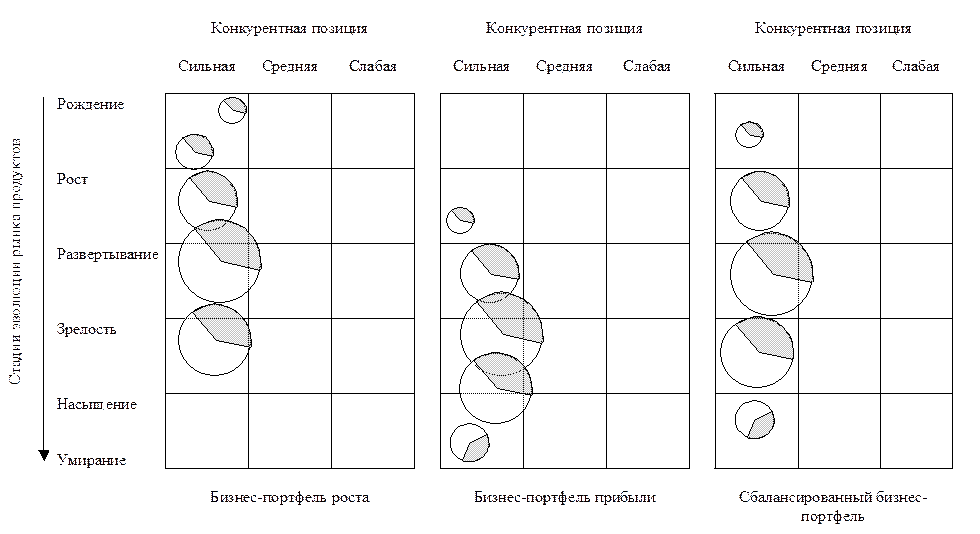 Рис. 14. Три основных типа идеального корпоративного бизнес-портфеля (по модели Хофера-Шенделя)