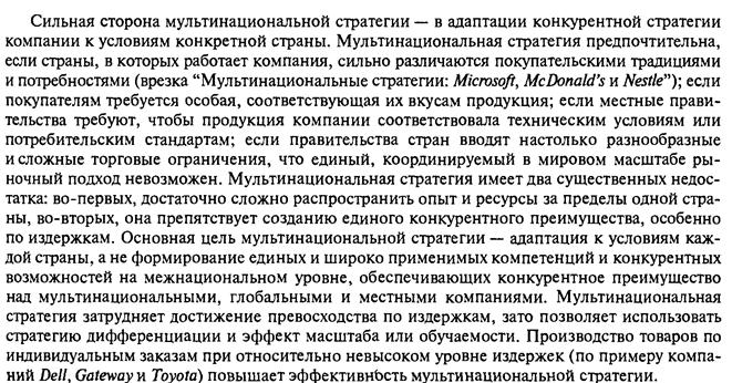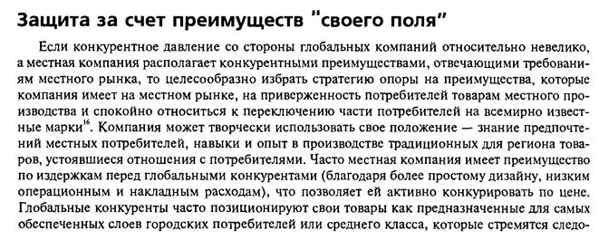 Степень этих общих потребностей зависит от культурных, экономических, климатических, юридических и других факторов. Можно привести много рынков, где запросы потребителей практически одинаковы. Примерами могут быть машины, безалкогольные напитки, быстрая еда, бытовая техника и компьютеры. Тогда: McDonalds, Burger King, Pizza Hut- фирмы, которые представляют систему быстрого питания; Coca-Cola, Pepsi-Cola - безалкогольные напитки; Sony и Panasonic - бытовую технику. Эти примеры иллюстрируют конвергенцию потребительских нужд на определенных рынках. Левитт (Levitt, 1983) определяет данное сходство запросов и предпочтений как усиливающуюся рыночную гомогенизацию - все рынки жаждут одних и тех же товаров независимо от национальной культуры и традиций.