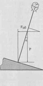 спринтера и придавливающие его к дорожке. Только в манеже эти изменения более выражены (рис. 33). На рисунке показано, как действует сила тяжести (Fu6) и центробежная сила (Р), какой угол наклона (а) в сторону центра виража, который зависит от скорости бега.