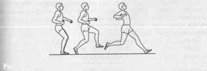 - то же, но с маховым движением одноименной руки в сочетании с подъемом на переднюю часть стопы толчковой ноги (рис. 98);