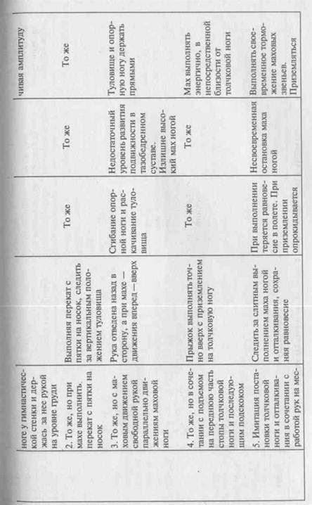 В каждом упражнении следить за плавным понижением ОЦМ на предпоследнем шаге; обратить внимание на режим разбега, добиваясь его постепенного ускорения. Для лучшего овладения ритмом разбега рекомендуется подсчет шагов голосом или хлопками.