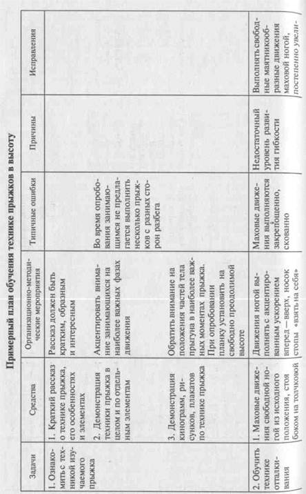 Рассмотрите «Примерный план обучения технике прыжков в высоту».