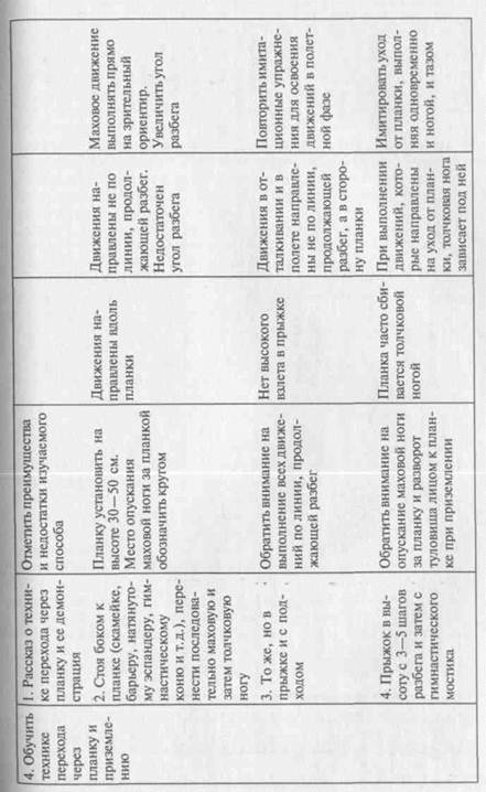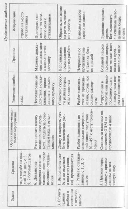 При решении этой задачи важно научить ритму разбега с постепенным увеличением скорости так, чтобы на последних трех Шагах разбега она была наибольшей, а предпоследний шаг — самым длинным, это позволит понизить ОЦМ прыгуна и создаст