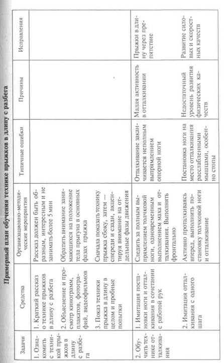 Рекомендуем подробно рассмотреть «Примерный план обучения технике прыжков в длину с разбега».