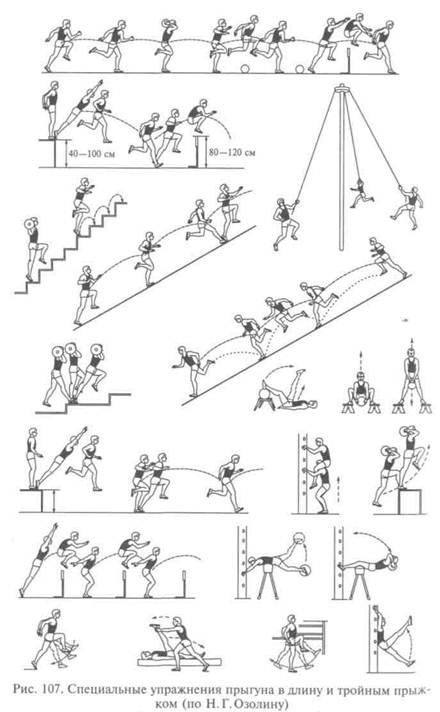 Приведем примеры специальных упражнений для прыгунов в Длину и прыгунов тройным прыжком (рис. 107).