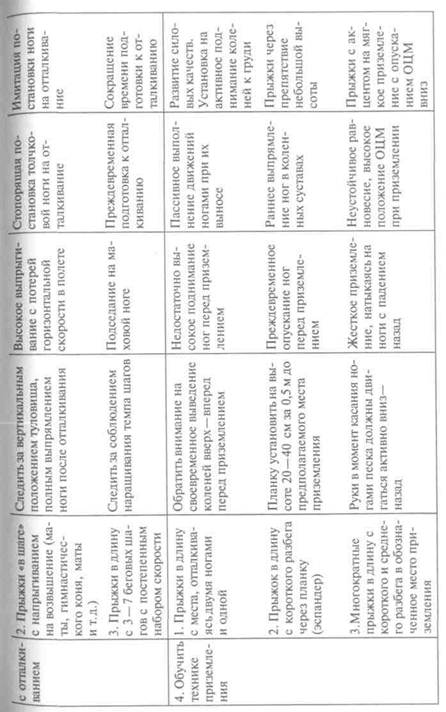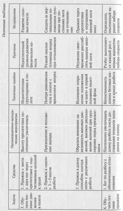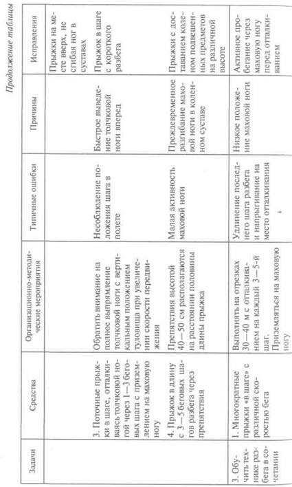 При овладении техникой изучаемых упражнений необходимо следить за ускорением ритма на последних шагах разбега, слитностью разбега и отталкивания, а длина последнего шага должна быть несколько короче предыдущего.