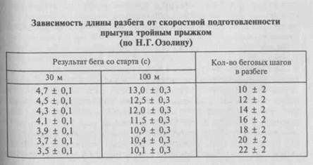 При обучении технике прыжков в длину в целом необходимо обращать внимание на выполнение ритма последних шагов и более быстрое отталкивание при минимальном снижении горизонтальной скорости, полученной в разбеге. Длина разбега зависит от абсолютной скорости занимающегося, его подготовленности к прыжкам, способности к ускорению в беге. Начало разбега определяется следующим образом: 1) занимающийся становится на доску для отталкивания спиной к яме, одна нога — впереди, сделав быстрый первый шаг сзади стоящей ногой; 2) начинает бег с постепенным наращиванием скорости. На 18 —21-м шагах разбега необходимо оттолкнуться вверх. На месте отталкивания преподаватель делает отметку мелом — это место и будет предварительным началом разбега.