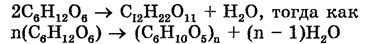 Различают полисахариды (С6Н10О5)n, дисахариды (C12H22O11) и простые сахара — моносахариды (С6Н12О6), являющиеся малыми органическими молекулами. Две молекулы моносахарида продуцируют одну молекулу дисахарида и одну молекулу воды, тогда как из n молекул моносахарида образуется одна молекула полисахарида и (n - 1) молекул воды. Следовательно,