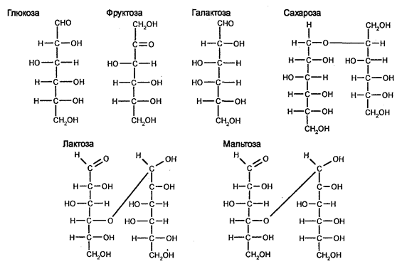 Дисахариды, трисахариды и тетрасахариды часто называют оли-госахаридами, среди которых очень важными для жизни организмов являются сахароза, лактоза и мальтоза. Сахароза, известная в быту как сахар, в больших количествах содержится в сахарном тростнике и сахарной свекле. Молекулы сахарозы состоят из остатков D-глюкозы и D-фруктозы. Лактоза, или молочный сахар, в большом количестве содержится в молоке. Она состоит из глюкозы и галактозы. Мальтоза встречается в составе крахмала и гликогена. Она состоит из двух молекул глюкозы и этим определяется ее биологическая важность.