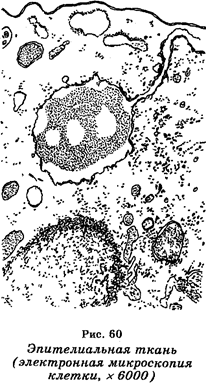 Среди покровных эпителиальных тканей различают плоский, кубический, призматический и ресничный эпителий (рис. 60).