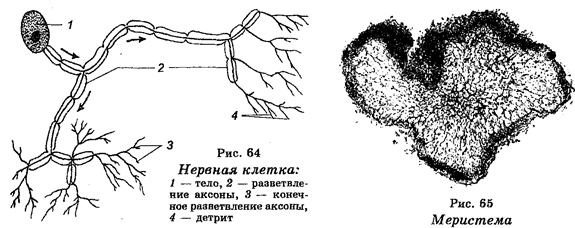 Меристематические ткани представлены мелкими клетками с крупными ядрами, в которых очень высок уровень метаболизма (рис. 65). Эти клетки способны к делению, что обеспечивает рост растений в течение длительного периода. Кроме того, они дают начало тканям остальных типов, т. к. происходит их дифференциация в ткани других типов. Меристема имеется в зародыше, на кончиках корней, а также в тех частях растения, которые очень быстро растут, и в камбии. Меристемы осевых органов растений обеспечивают их рост в длину, тогда как меристемы стебля и корня ответственны за их рост в толщину. В частности деление клеток камбия сопровождается ростом стебля в толщину. Слои клеток древесины, выросшие в течение сезона (весна, лето и осень), образуют так называемое годичное кольцо прироста.