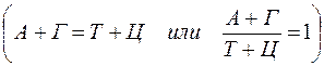 1. Сумма нуклеотидов, содержащих пуриновые азотистые основания, равна сумме нуклеотидов, содержащих пиримидиновые азотистые основания