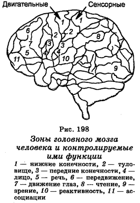 У млекопитающих увеличение полушарий головного мозга сопровождалось развитием коры, образованием в ней извилин и борозд, завершением развития вторичного мозгового свода (неопаллиума), прогрессивным развитием мозжечка (рис. 198). Основной структурой и функциональной единицей нервной системы является нейрон, развитие которого у человека достигает наивысшего уровня. Происходит дифференциация нейронов на сенсорные, моторные и соединительные. Нейроны синтезируют большое количество нейропептидов, ответственных за коммуникацию клеток и другие важные функции.