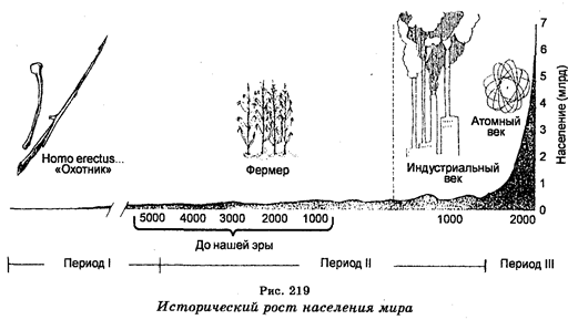 Производство пищи. В ходе своей истории человечество всегда сталкивалось с необходимостью обеспечения себя пищей, причем эта проблема решалась разными способами. В течение первых тысячелетий своей истории наши предки были хищниками и травоядными, а Земля в начальный период земледелия могла прокормить лишь 10 млн человек (рис. 219). Недостаток продовольствия сопровождается голодом.