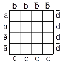 В этом методе для изображения функции n переменных рисуется специальная таблица, которая содержит 2n клеток. В каждой клетке ставится соответствие одному из наборов n переменных. В клетке записывается значение, принимаемое функцией при этом наборе аргументов. Все клетки, соответствующие наборам содержащие некоторую переменную без знака инверсии образуют область из 2n-1 клеток. Эта область называется областью данной переменной (например, область переменной х). Остальные клетки образуют область этой инверсной переменной. Возможные наборы аргументов распределены по клеткам таким образом, чтобы границы областей всех переменных и их инверсии были четки, а принадлежность любой клетки к той или иной область зрительно легко выявлялась.