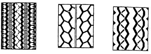 Примечание. Типы рисунков протектора приведены для иллюстрации принципа их построения. Форма, габариты, расположение элементов рисунков могут варьироваться.