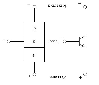 Первые транзисторы были биполярными (т.е. двухполярными) p-n-p и n-p-n, как показано на рисунке 1.35.