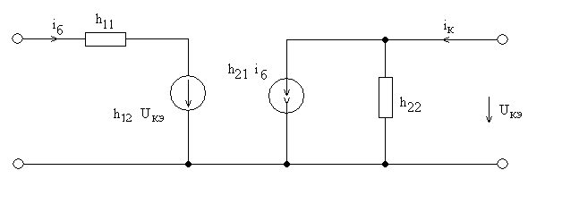 В этой схеме h12Uкэ – источник напряжения; h21iб – источник тока; h22 – проводимость;