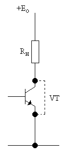 Слева у семейства – линия насыщения, она одна и та же для всех значений базового тока, но для больших значений тока базы она продлевается вверх, до тех пор, пока не образуется колено перехода линии в активную область. Принято считать, что если рабочая точка процесса находится на линии насыщения, то транзистор насыщен, открыт, ток коллектора не зависит от тока базы, транзистор неуправляем. Например, в схеме рисунка 1.38 а) в режиме насыщения, ток в цепи зависит от величин напряжения +E0 и сопротивление резистора Rн, а транзистор в первом приближении можно считать закороченным, как показано штриховой линией.