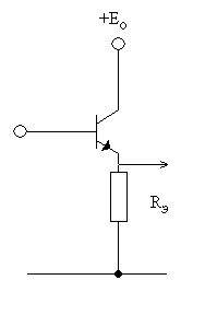 Схема рисунка 1.39, а) называется ОБ потому, что управляющий сигнал подается на эмиттерный электрод, а база заземлена. Свойства схемы: входное сопротивление невелико, примерно на порядок меньше, в сравнении со схемой б) (десятки Ом), выходное сопротивление на порядок больше, чем у схемы ОЭ, рисунок 1.39,б), схема не инвертирует входной сигнал, коэффициент усиления по току близок к единице, но меньше единицы, коэффициент усиления по мощности примерно на порядок меньше, чем у ОЭ, полоса пропускания ∆f выше, чем у ОЭ, линейные и нелинейные искажения меньше. Термостабильность каскадов лучше. Несмотря на эти достоинства схема ОБ применяется редко, так как трудно произвести согласование каскадов из-за различия входного и выходного сопротивлений.