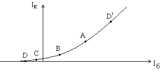Если выбрана точка А, то это соответствует наиболее линейному усилению, усиливаемый сигнал может быть точечным (в точке А), либо иметь размах с центром в точке А, при этом выбирается наиболее прямой участок характеристики, чуть больше или меньше (инженерная погрешность). Для точки В характерны нелинейные искажения, размах в положительной области может быть BD', и столько же по амплитуде влево от точки В, при этом выходной сигнал имеет несимметричные полупериоды, цена несимметричности - более высокий КПД. Аналогично для С, нелинейные искажения ещё больше при возрастающем КПД.