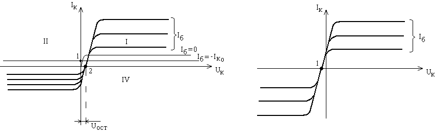 На рисунке 1.44,б) приведены характеристики инверсного включения, особенностью которого является почти на порядок меньшая величина остаточного параметра по напряжению (точка 1). Один из примеров использования – маломощные, малосигнальные ключи, коммутаторы.