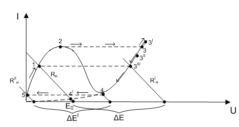. При этом наклон нагрузочной прямой в точках 3,