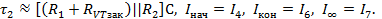 . Происходит разряд С, что эквивалентно движению прямой R1 в обратном направлении до положения 3 (колено выключения). Затем скачок к точке 4. Тиристор закрыт, опять заряжается конденсатор и т.д. Таким образом формируется непрерывный генерационный автоколебательный режим. При расчете длительностей оснований импульсов принимать, что