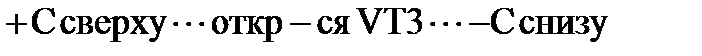 (см. рисунок 4.28,б), т. е. вначале на конденсаторе низкий уровень, воздействует на плюс вход компаратора К1, но так как этот уровень пока низкий, то этот вход не работает. С течением времени экспонента графика на рисунке 4.28, б) достигает порога срабатывания третьего входа, т. е. высокого уровня, который через “+” компаратора К1 в неинвертируемом виде, поступает на вход R триггера Т и устанавливает его в нуль. Следовательно, на верхнем выходе триггера Т выявится нуль, VT1 закрыт, на нижнем выходе Т – единица, VT2, VT3 открыты. Поэтому на графике рисунка 4.28, в) заканчивается импульс, а на графике, изображенном на рисунке 4.28, б), экспонента разряда конденсатора С формируется по цепи