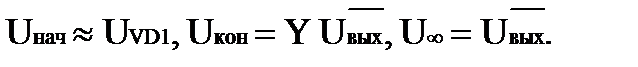Напряжение с выхода Uвых+ через Rос поступает на конденсатор С, заряжает его, открывает VD1, следовательно, на С устанавливается 0,6..0,7 В (см. рисунок 4.49).
