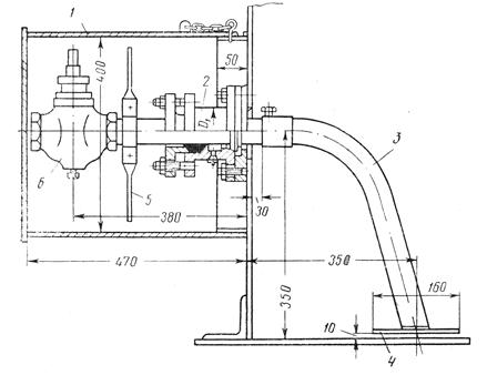 1 –защитный чехол; 2 –сальниковое уплотнение; 3 –патрубок; 4 – защитная диафрагма; 5 – поворотная ручка; 6 – пробковый кран.