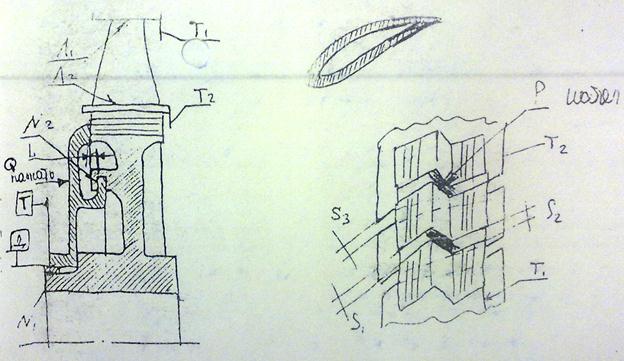 S1, S2 и S3, а так же совмещение трактовых поверхностей достигаются по методу пригонки путем последовательной многократной сборки/разборки РК (3-4раза). Устанавливаются сразу все лопатки и поочередно сдвигают сразу все примерно на 1 мм – суть первой сборки – проверка собираемости. Если нет собираемости, то отмечают лопатки где нет зазора, когда все лопатки зайдут определяют норму зазора. В этом заключается вторая сборка. При третьей сборки контролируют натяг по поверхности Р. Контроль параллельности торца Т1 относительно Т2. Контролируется расположение по внутренним трактовым поверхностям Л1 и Л2. Если перепад между ними >0,1-0,3, то они разбираются.