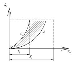 3) Контрольная проверка, то есть собирается блок подшипника с доработанными кольцами, укладывается на специальное приспособление и создаются ударные нагрузки. Измеряют величину сумм деформации и она должна проходить в заштрихованной зоне. Тем самым обеспечивая распределение осевой нагрузки На в требуемых соотношениях 50-60% на Б и 40-50% на А.