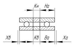 2) Определение толщины дистанционных колец между подшипниками с учетом упругих деформаций. Для этого составляется размерная цепь. Под действием рабочей нагрузки Q имеет место деформация колец Ха и Хб, поэтому для того что бы размерная цепь замыкалась необходимо измерить величину Кн компенсирующего кольца между наружными кольцами А и Б и рассчитать величину Кв. Расчетная величина достигается путем шлифования кольца на заданный размер.