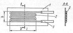 Тензочувствительные преобразователи, широко применяемые в настоящее время (рис. 11-6), представляют собой тонкую зигзагообразно уложенную и приклеенную к полоске бумаги (подложке /) проволоку 2 (проволочную решетку). Преобразователь включают в цепь с помощью привариваемых или припаиваемых выводов 3. Преобразователь наклеивают на поверхность исследуемой детали так, чтобы направление ожидаемой деформации совпадало с продольной осью проволочной решетки.