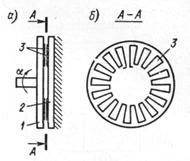 Для измерения малых угловых перемещений используют индуктосины (рис. 11-14). Ротор / и статор 2 индуктосина снабжают печатными обмотками 3, имеющими вид радиального растра. Принцип действия индуктосина аналогичен описанному выше. Нанесением обмоток печатным способом удается получить большое число полюсных шагов обмотки, что обеспечивает высокую чувствительность преобразователя к изменению угла поворота.