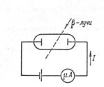 Если камеру, содержащую газ, подвергнуть облучению, например, р-лучами, то между электродами, включенными в электрическую цепь (рис. 11-16), потечет ток. Этот ток зависит от приложенного к электродам напряжения, от плотности и состава газовой среды, размера камеры и электродов, свойств и интенсивности ионизирующего излучения и т. д. Эти зависимости используют для измерения различных неэлектрических величин: плотности и состава газовой среды, геометрических размеров деталей и т. д.