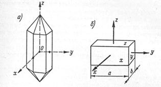 Из кристалла кварца вырезается пластинка, грани которой должны быть перпендикулярны оптической оси Oz, механической оси Оу и электрической оси Ох кристалла (рис. 11-22, а и б).