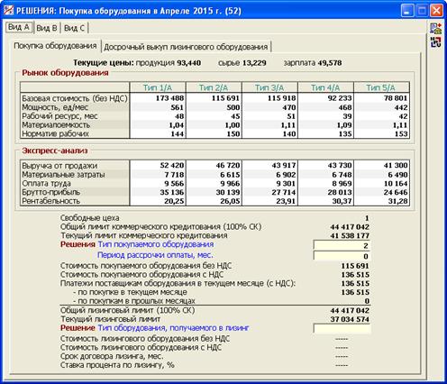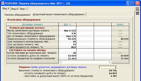 В данном разделе программы (рис. 2.3) принимаются решения, связанные с покупкой или взятием в лизинг производственного оборудования, а также досрочным выкупом лизингового оборудования (что также является своеобразной формой его покупки).